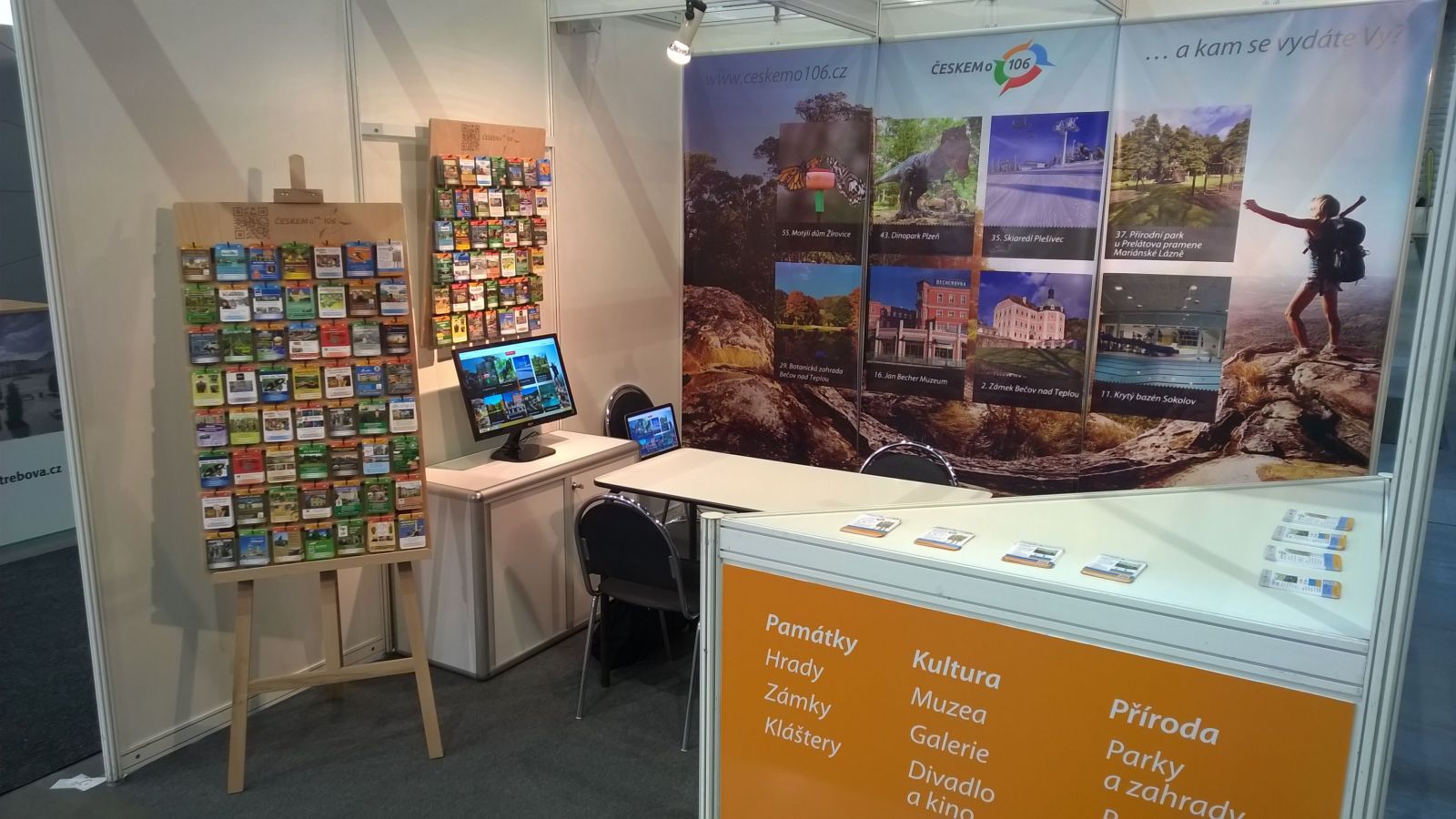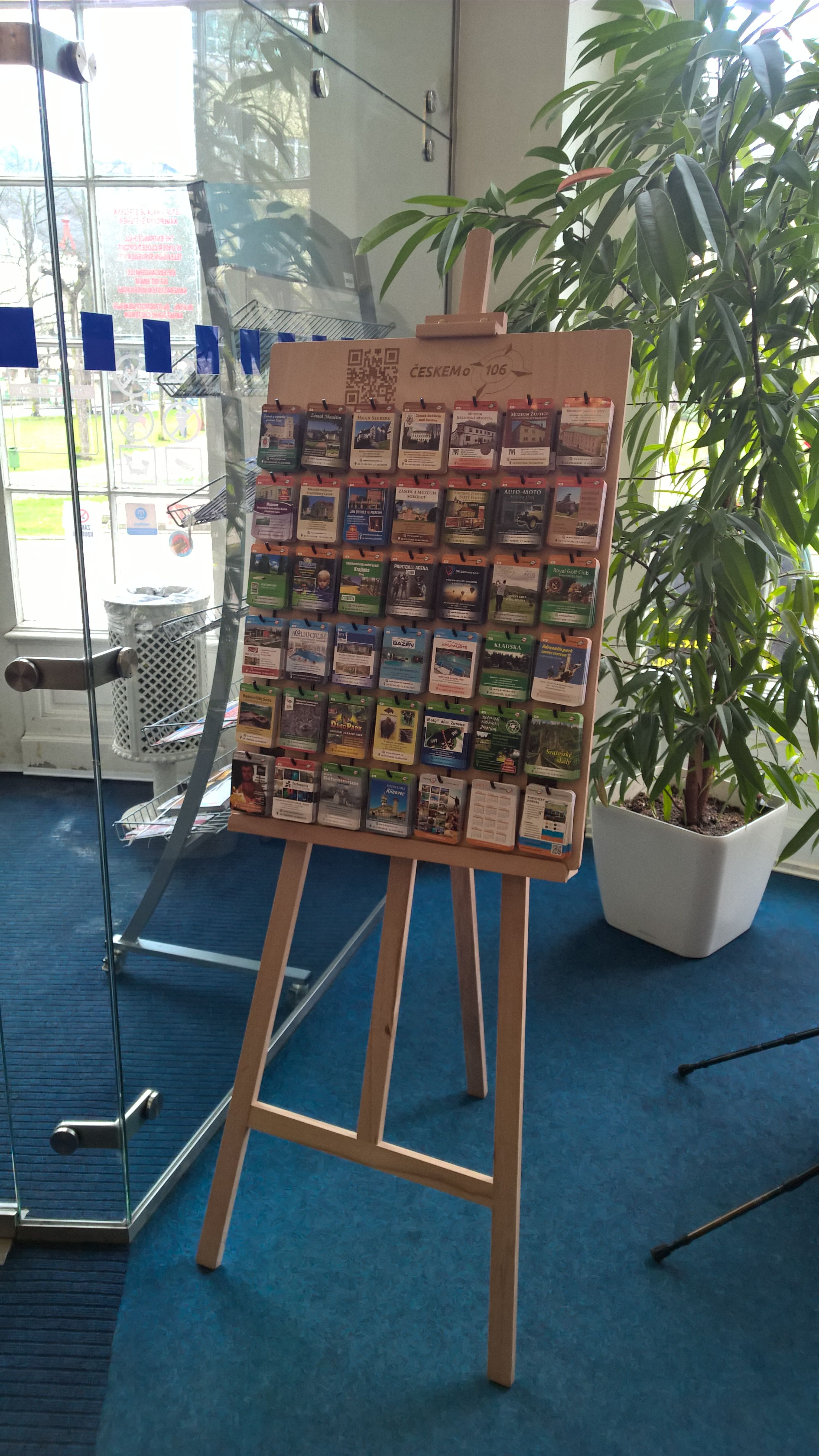 Se službami portálu Českem o 106 se můžete také pohodlně seznamovat ve vybraných informačních centrech a střediscích. Tam můžete najít kromě webu i naše stojany, které Vám pomohou si vybrat zajímavý cíl. Na stojanech najdete kartičky (Navštívenky o 106) zajímavých lokalit, které jsou v okolí, a kartičku Vašeho cíle si můžete odnést s sebou. Poslouží vám díky mapce na cestě, ale předně, některé kartičky využijete v cíli jako poukaz na slevy či další služby!