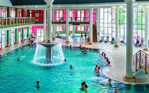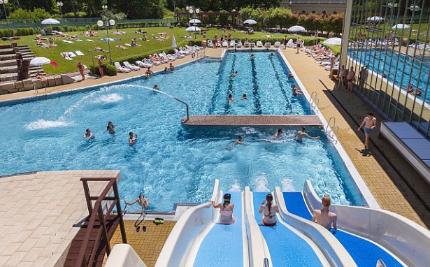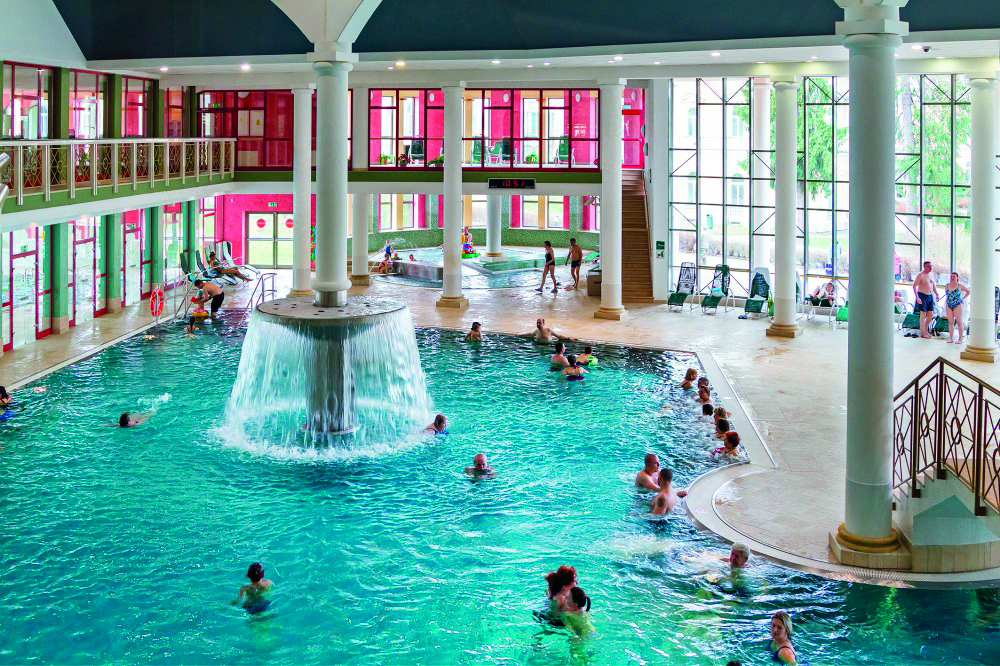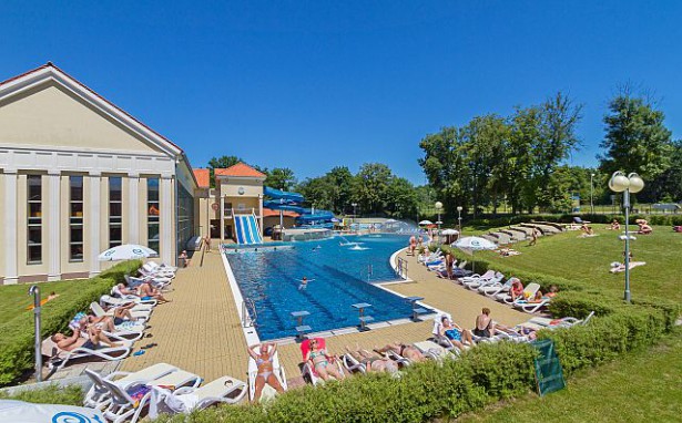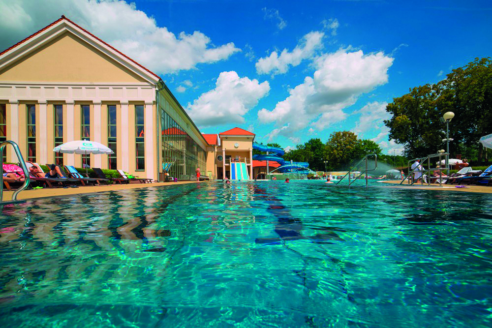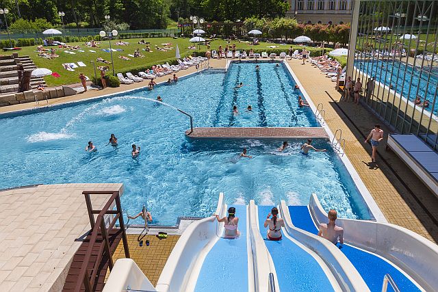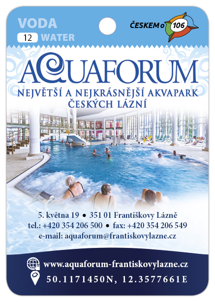 Podobně jako samotné lázeňské město je i Aquaforum zakomponováno do rozlehlých parků. Pohlazení po duši i po těle, které nezávisí na rozmarech počasí, nabízejí bazény a vířivky s minimální teplotou vody 28°C. V zastřešené části objevíte velký relaxační bazén s vodními atrakcemi, plavecký bazén, dětský bazén a whirlpool, pod širým nebem je velký relaxační bazén, dětský bazén a venkovní whirlpool, dětské hřiště a hřiště pro beach volejbal. Tobogán a skluzavky doplňují masážní proudy a lavice, vodní jeskyně, vřídla a další atrakce, k dispozici je rovněž sauna, restaurace a snack bar.