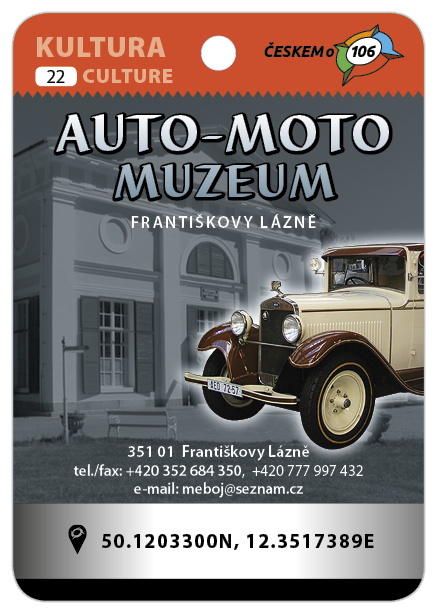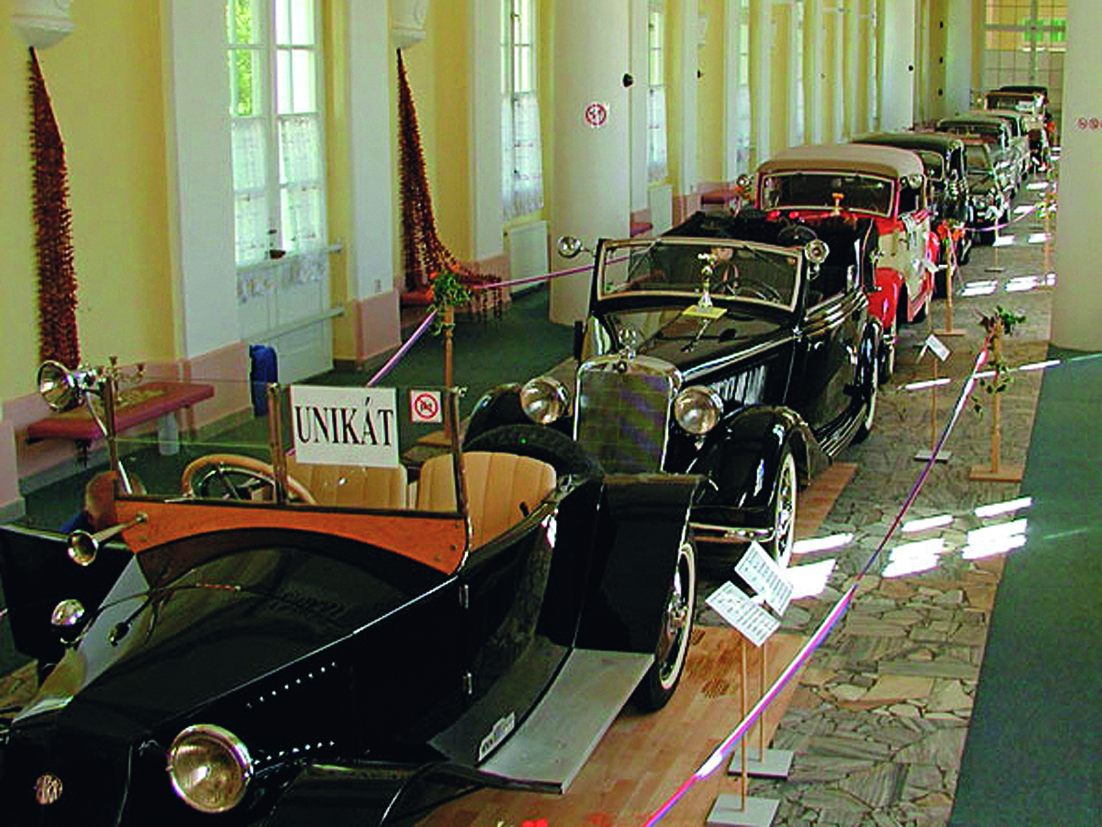 Auto-moto-muzeum nabízí dvě oddělené expozice. V pravém křídle kolonády si prohlédnete automobilové veterány značky Škoda, Tatra a Mercedes, a to včetně již zmíněného vítězného vozu či Tatry 12 Roadster Speciál z roku 1930, která je jediným dochovaným modelem tohoto vozu. V levém křídle je vystaveno několik desítek motocyklů českých a německých značek, například Jawa, ČZ, Stadion, NSU, nebo Simson. Mezi vystavenými stroji jsou opravdové unikáty, například Škodovka 430 coupé Sport z roku 1931, která byla coby předváděcí vůz vystavena v roce 1931 na Mezinárodní výstavě automobilů v Praze ve Veletržním paláci a nevlastní ji ani automobilka Škoda v Mladé Boleslavi. K vidění jsou i exempláře z Veteran Car Clubu Cheb, například Jawa 555 – Pionýr z roku 1960, která absolvovala expedici do Dakaru, nebo ČZ 150 z roku 1951, která má za sebou Motoexpedici Namibia. Neobvyklá je také přehlídka téměř neznámých tříkolek Simson Duo, určených jako dopravní prostředek pro invalidy.